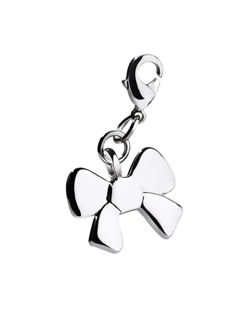 The Bow: Chic and romantic. The bow signifies a pledge of love and friendship. The shiny, palladium-coated charm with rounded edges is a real eye-catcher. Thanks to the snap clasps, the charm can be changed as often as you like.