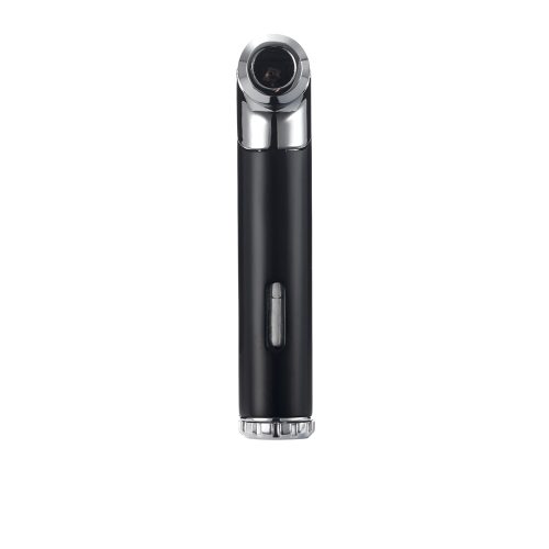 Pacific pipe flame cigar lighter with side-mounted torpedo pipe flame, single-action ignition, fuel window, oversized flame adjuster and built-in tamper/reamer. Re-engineered for increased reliability to near 100% fire rate.