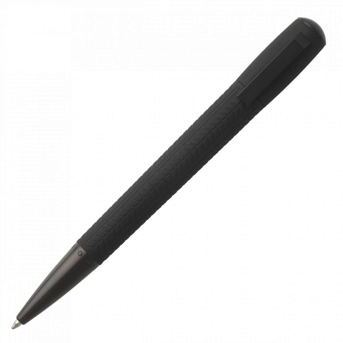 The « Pure » line with its tapered yet aerodynamic silhouette redefines modern lines with structural simplicity. The new « Tire » ball pen version is the embodiment of the line technical precision and contemporary feel. Its barrel is engraved with a graphical print inspired by the racing sports connections of the HUGO BOSS house. The surface is resolutely black, playing on the contrast between deep black metal and a soft touch coating on the tire print.
